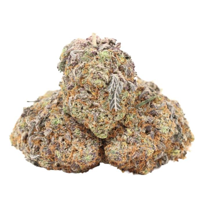 - These buds features dense, grape-shaped blue-green nugs adorned with thin orange hairs and tiny, blue-tinted white crystal trichomes, making it as visually appealing as it is potent.