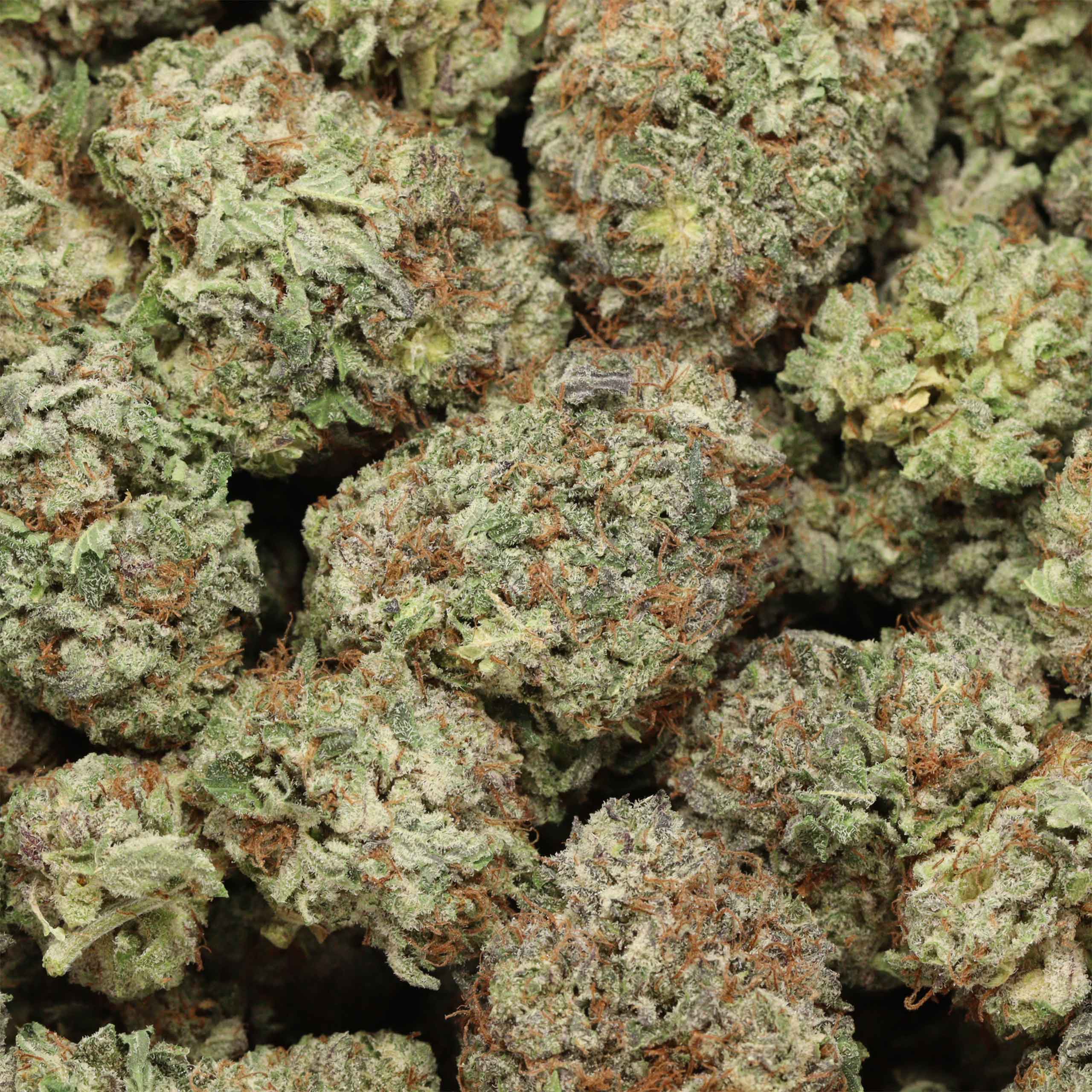 Cherry OG hybrid weed strain boasts impressively large buds that adhere in a dense, indica-typical structure. These oversized flowers are almost conical in shape, broad at the base and distinctly pointed at the end. The tightly-packed leaves are an earthy shade of olive green and are shot through with hairy, rust-coloured pistils. Finally, translucent white trichomes cover the nugs, making them very sticky difficult to break up without the use of a quality grinder.