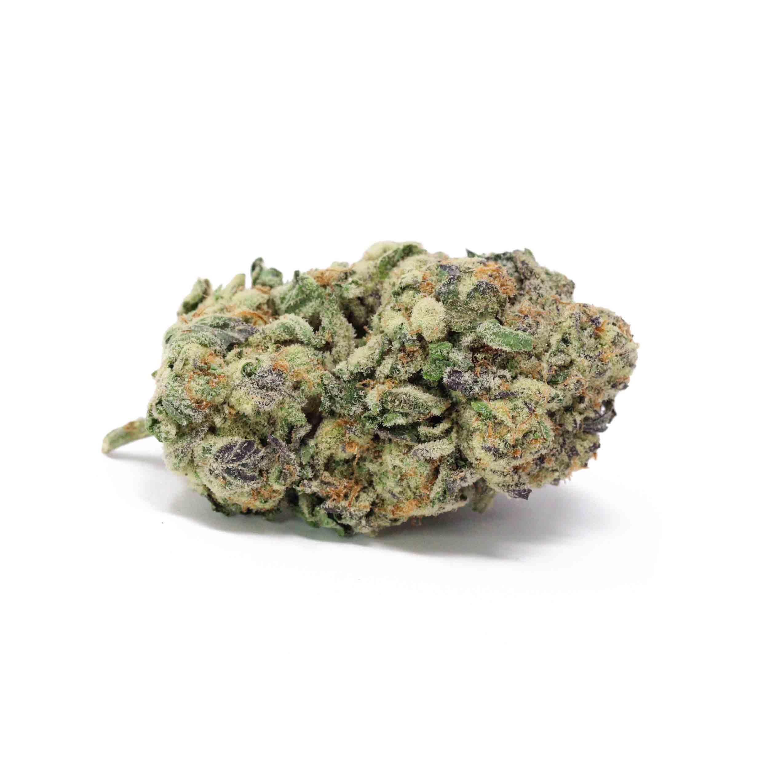 This GMO Cookies strain isn’t the only variant on the market. Some researchers think skunkmasterflex bred the strain. Divine Genetics also has a version of this strain called Chem Cookies with similar genetics in appearance but using different phenotypes to create a completely different profile. The orange and purple buds are shaped like flat peppers and cloaked in a blanket of clear trichomes.