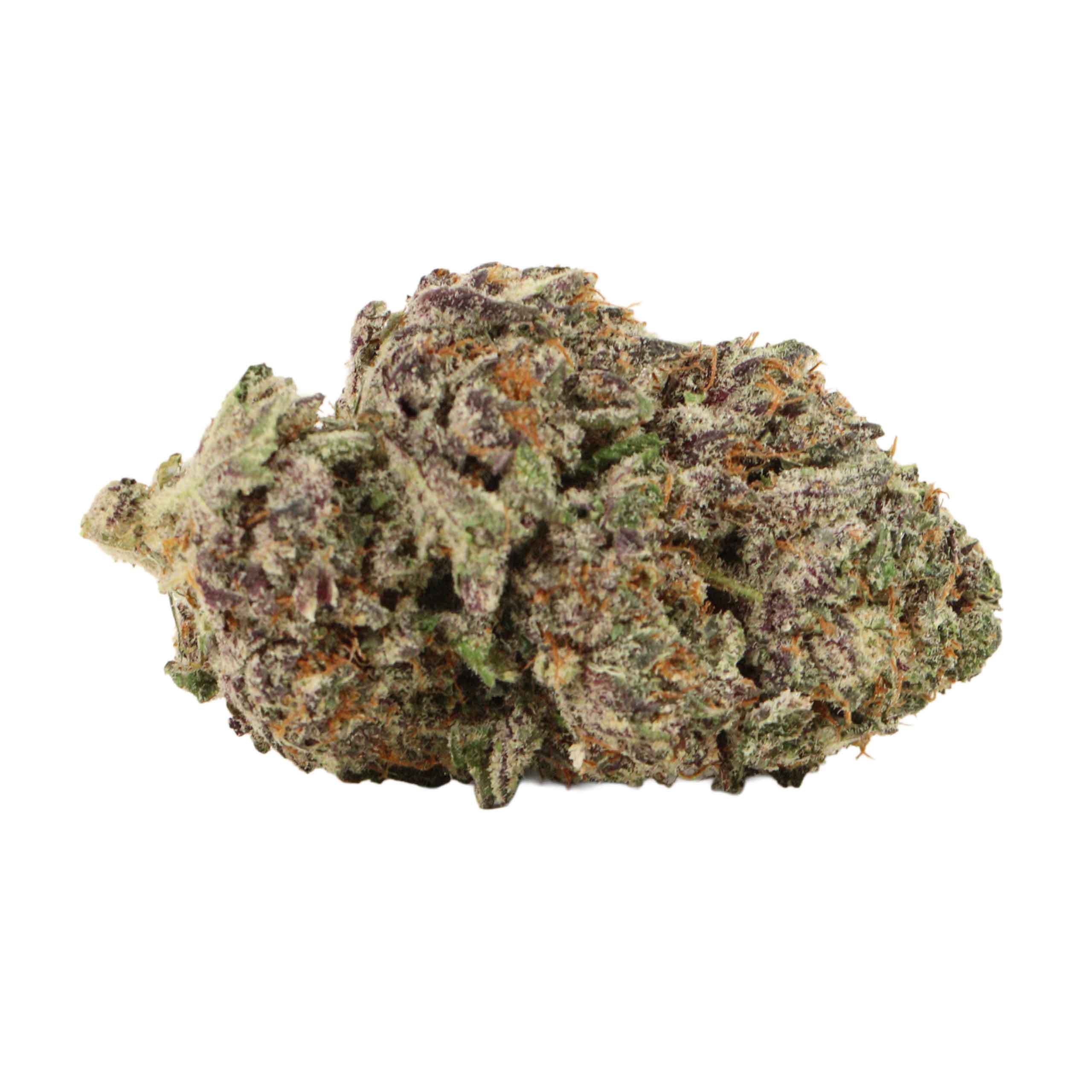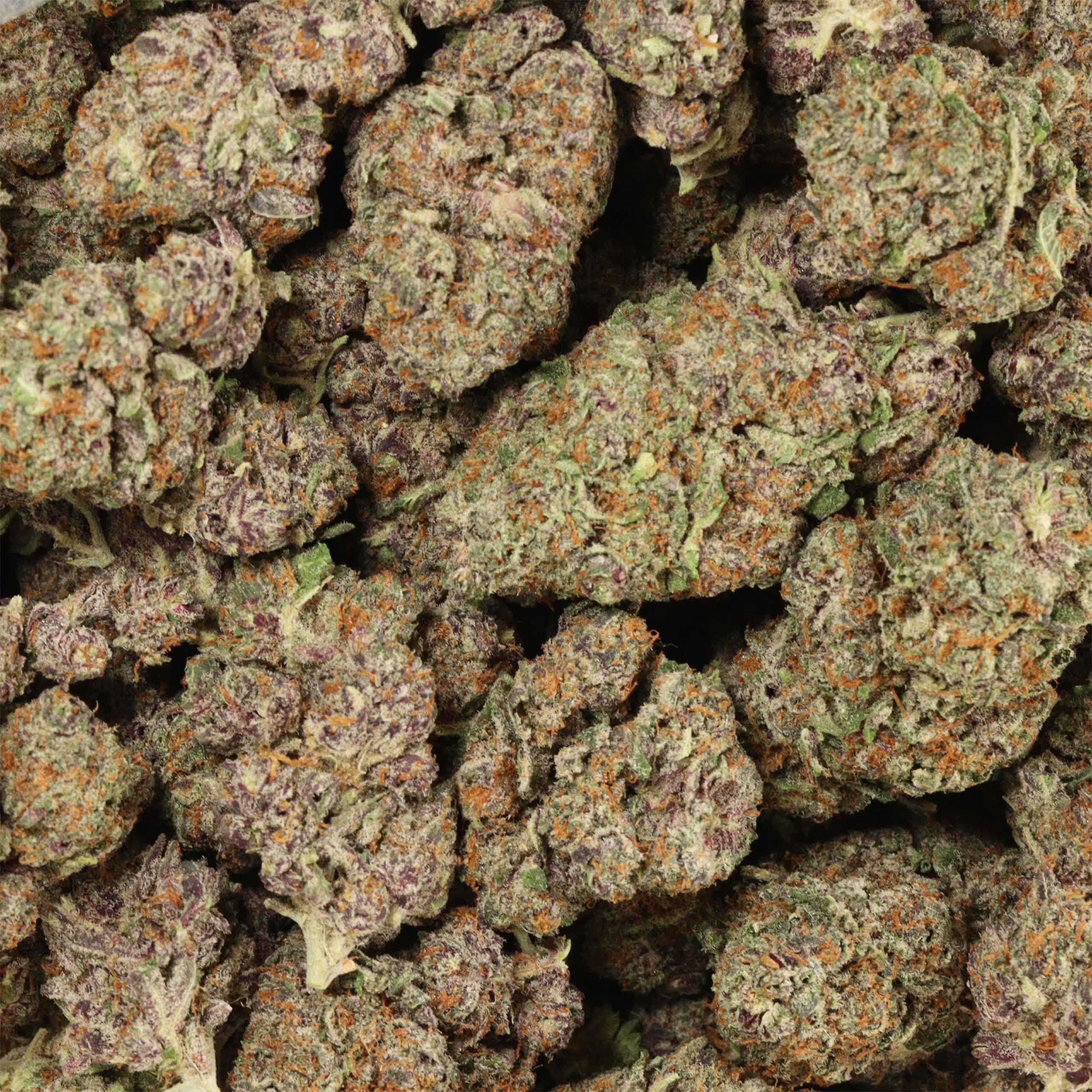 Gorilla Glue #4 Indica dominant hybrid cannabis strain is unusual for its crystalline, snow-white appearance and the fact that it is exceptionally resinous. Gorilla Glue #4’s buds are medium in size and forest-green in hue, with only the stunning deep-purple calyxes and leaves providing contrast.