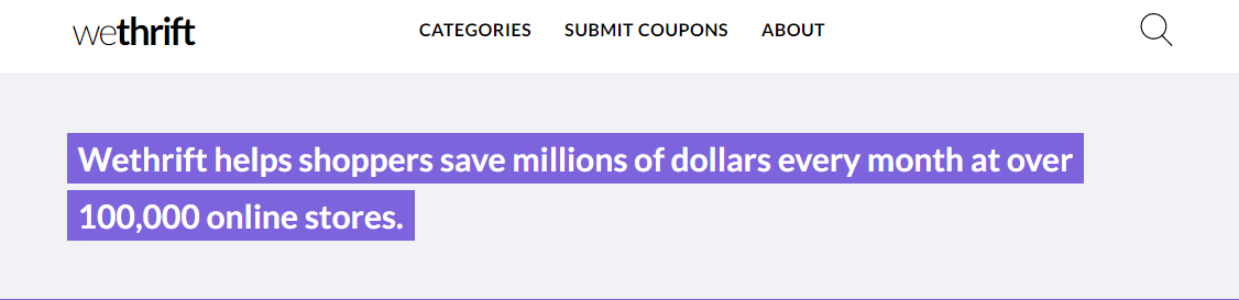 There are already over 900,00 shoppers who have discovered new ways to save money at over 100,000 stores of Wethrift. This is because they only publish real, working coupon codes, and not fake deals or offers that do not work. With their honesty and authenticity, they continue to invite shoppers to love them.